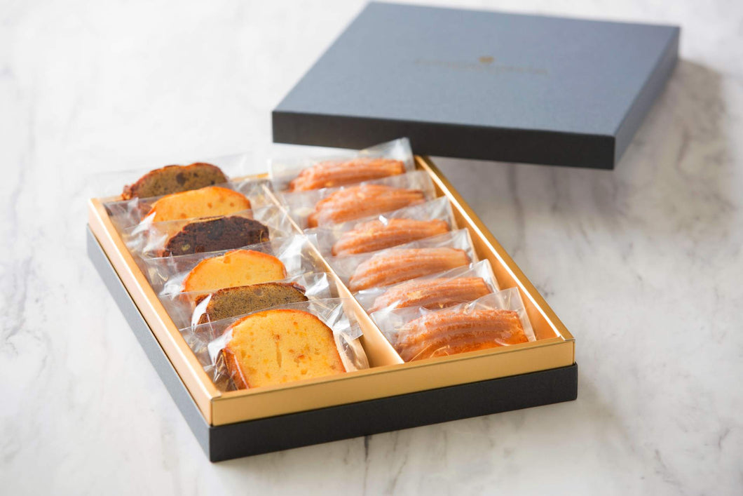 手土産やプレゼントにもおすすめです。オレンジピールをふんだんに使用した「ケーク オランジュ」、 アールグレーの香り豊かな「ケーク アールグレイ」、ドライイチジクとオレンジピール、チョコの組み合わせが絶妙な一品「ケーク ショコラフィグ」など、ホテルオリジナルの焼き菓子をご堪能ください。アソートボックスのためご購入時期によって内容が異なります。